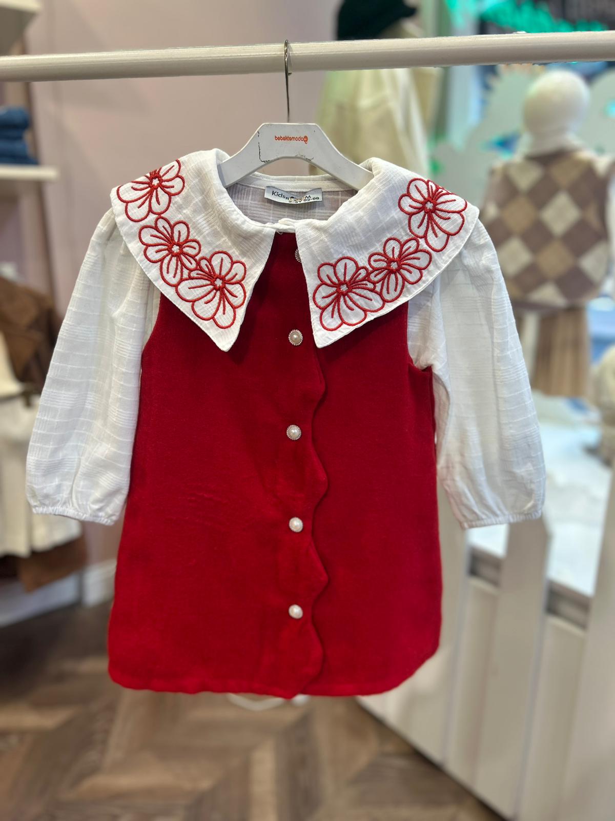 Kırmızı NAKIŞLI GÖMLEKLİ KAŞE ELBİSE