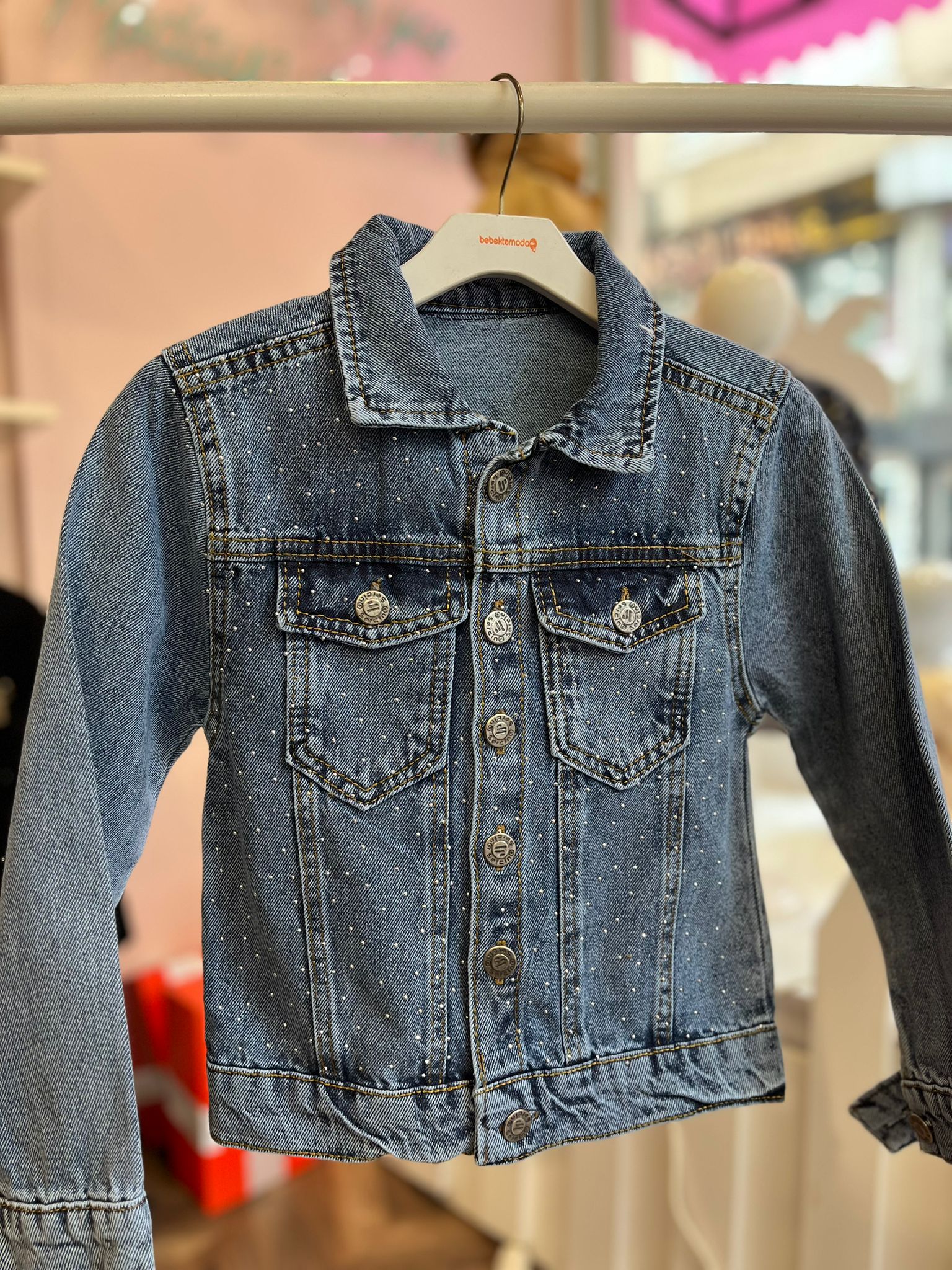 TAŞ DETAYLI CEPLİ KOT CEKET Mavi