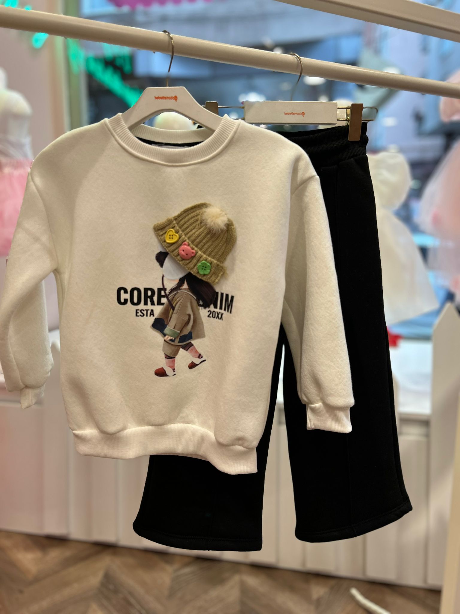 İNCİ DETAYLI ŞARDONLU 3 İPLİK TAKIM Siyah