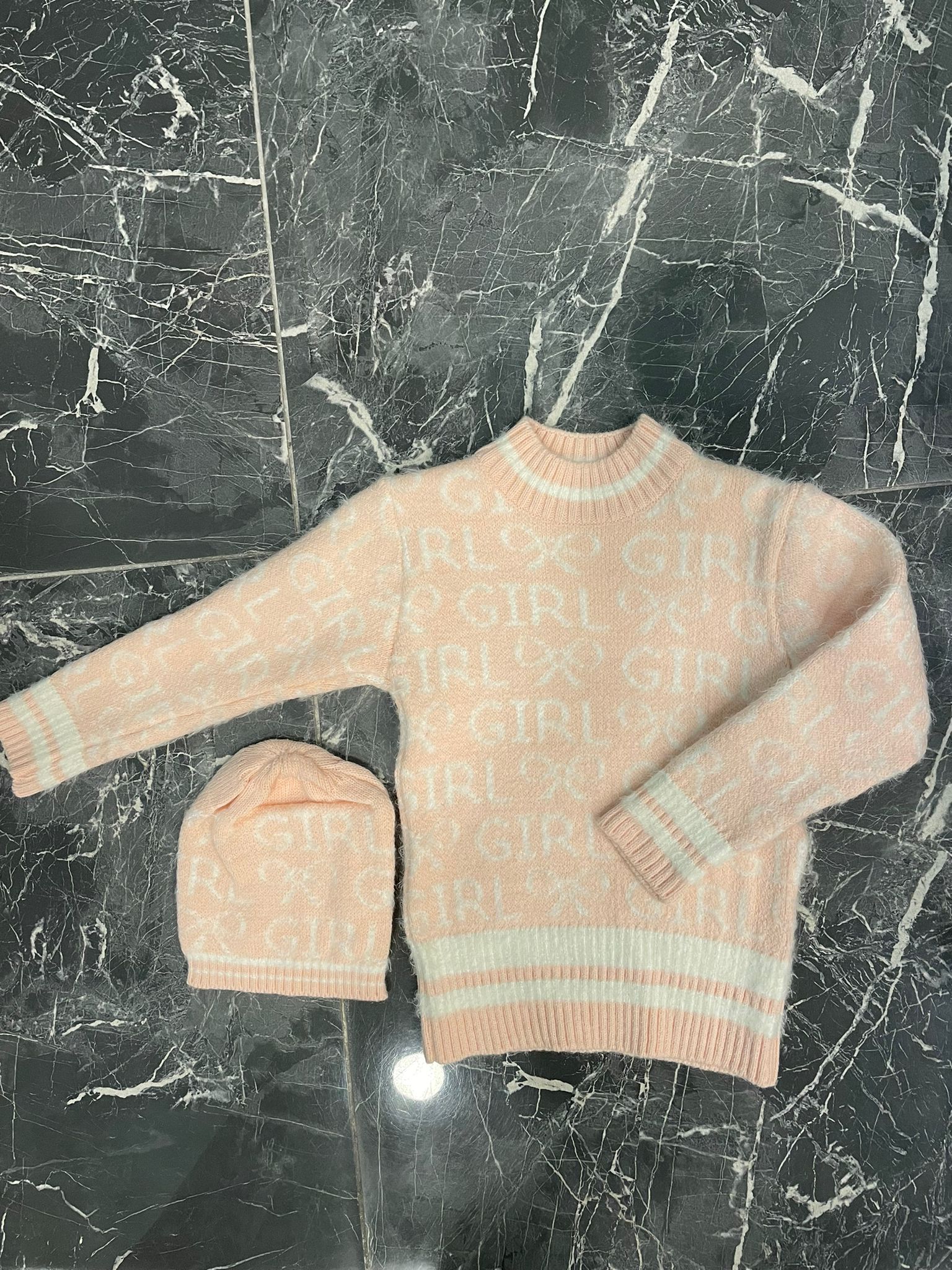 Baskılı örgü bere Baskılı şerit detaylı örgü kazak
