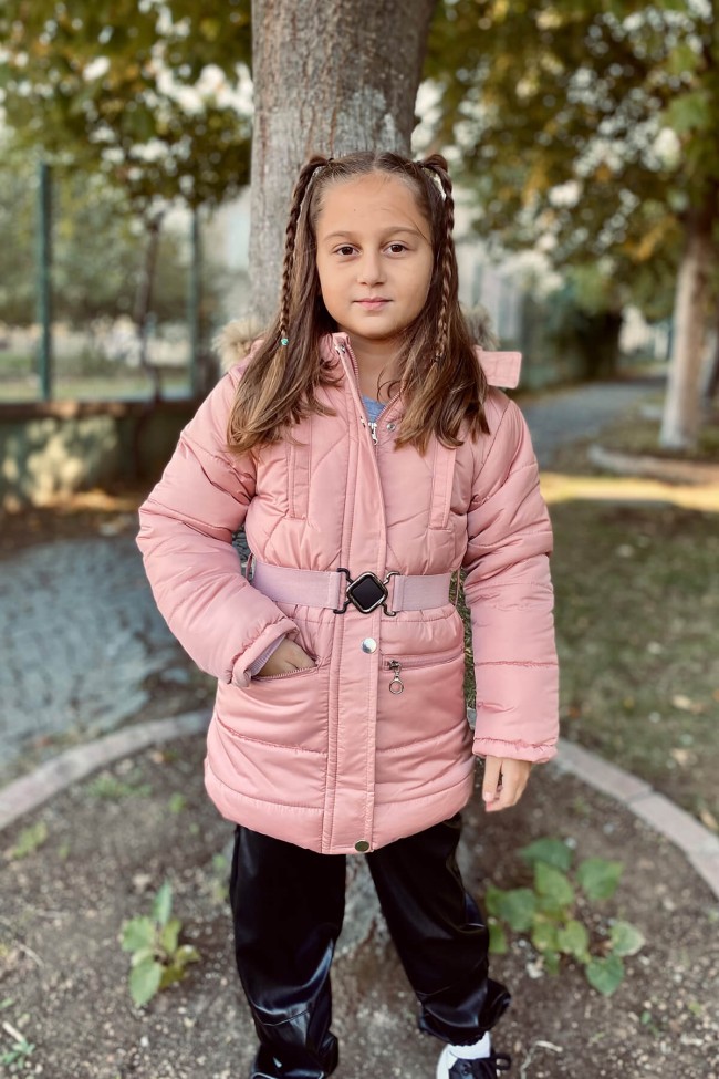 İçi kürklü, kapüşonlu, kapüşonu kürklü, çift cepli, beli kemer detaylı, uzun kollu, şişme kaban