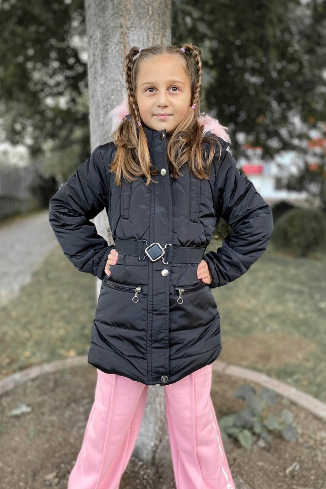 İçi kürklü, kapüşonlu, kapüşonu kürklü, çift cepli, beli kemer detaylı, uzun kollu, şişme kaban